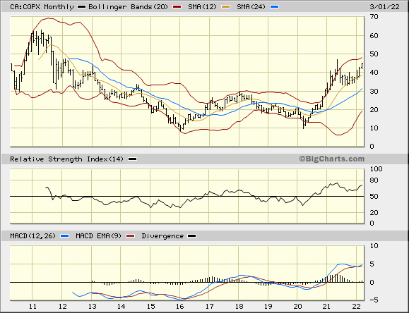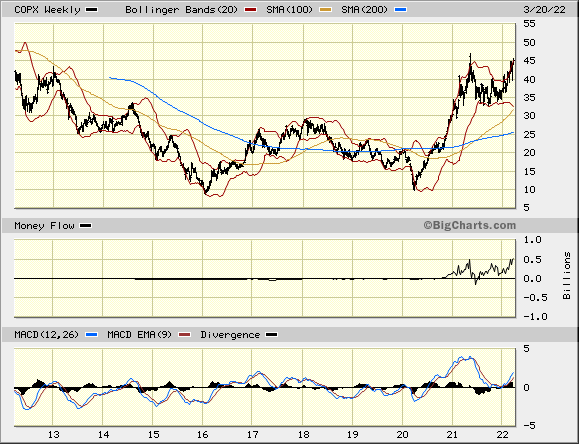 Der COPX spiegelt die lebhafte Vola der Kupferaktien in letzter Zeit wider... Mit fester Tendenz.