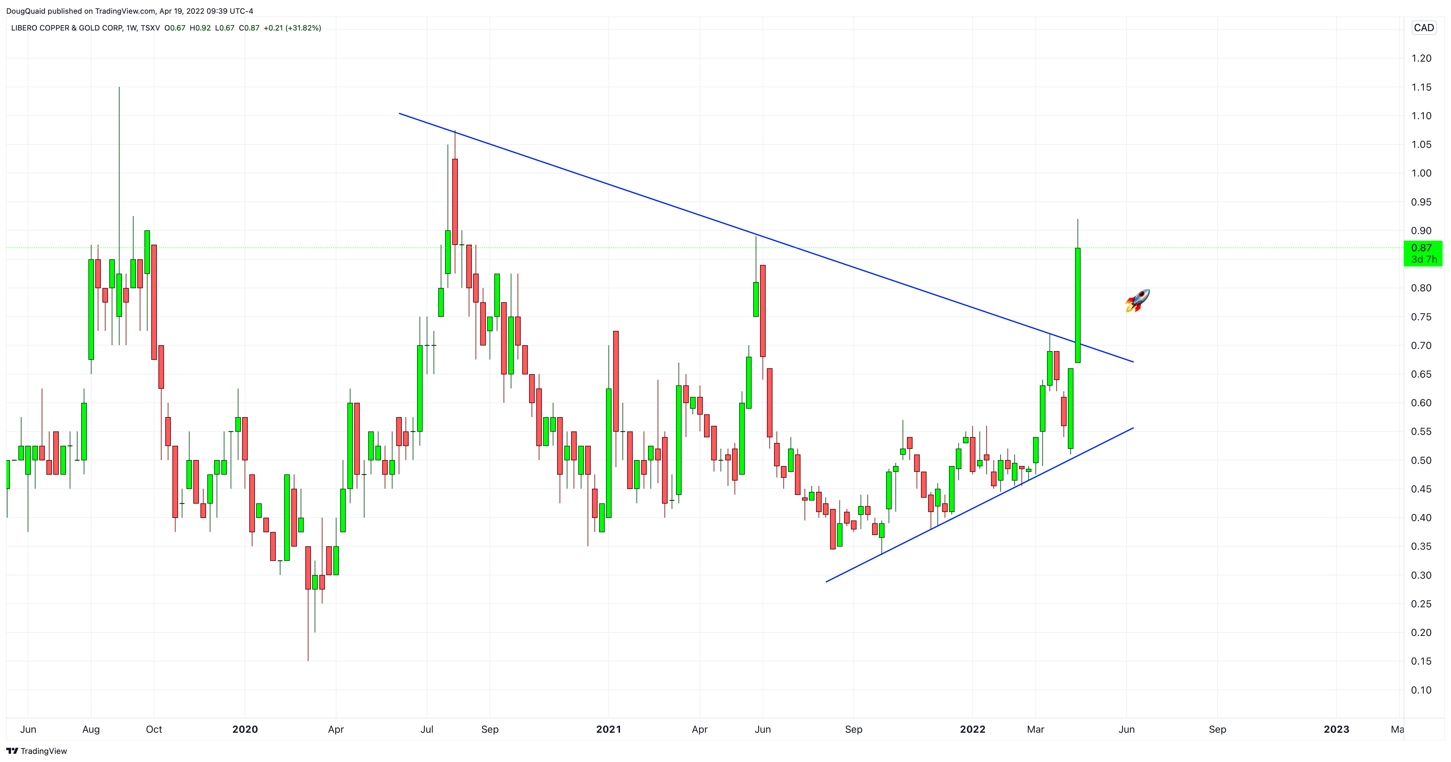 Libero Copper and Gold Corp. (LBC:TSX.V:, LBCMF:OTCQB), C$0.50, $0.39