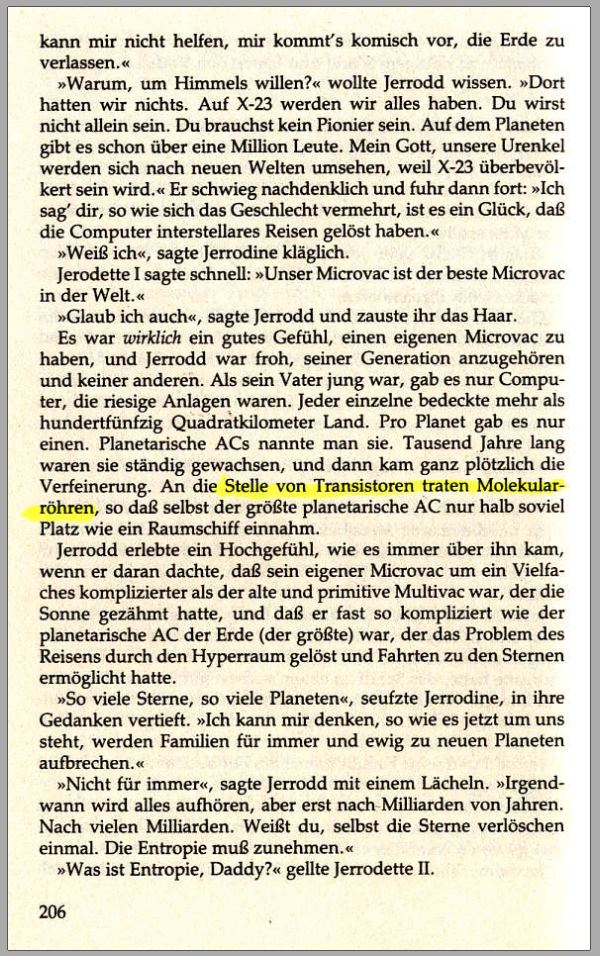 - Dann gelingt es, eine künstliche 1:1-Kopie eines menschlichen Gehirns zu erzeugen. Es wird möglich, den gesamten Inhalt des Gehirns und seine Struktur in einen Computer zu downloaden. Menschen leben das als intelligente Software im Cyberspace oder einem Cyborg-Avatar ihrer Wahl. Der Mensch kann beliebig die Körper wechseln. Es gibt keinen Unterschied mehr zwischen Realität und Cyberspace. Der Mensch kann mit seinem Bewusstsein in den Cyberspace reisen und dort Welten erschaffen und beherrschen. Der Mensch hört auf zu existieren, Evolution geschieht durch gezielte Schöpfung neuer Intelligenzen.