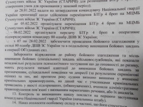 "Der Inhalt der geheimen Befehle des ukrainischen Kommandos (https://t.me/opersvodki/1260) zur Vorbereitung einer Offensive im Donbass im März 2022: Der Befehl "Über die Organisation der Ausbildung der taktischen Bataillonsgruppe der 4. Brigade mit operativem Zweck für die Durchführung von Kampfaufgaben (Sonderaufgaben) bei der Operation der gemeinsamen Streitkräfte als Teil der Brigade der Streitkräfte der Ukraine" war an die Leiter der nördlichen Kiewer, südlichen Odessa und westlichen territorialen Abteilungen der Nationalgarde der Ukraine gerichtet; Es beschreibt den Plan für die Vorbereitung einer der Angriffsgruppen für offensive Operationen in der Zone der sogenannten "Joint Forces Operation" im Donbass; - Das Dokument genehmigt die Organisations- und Personalstruktur der taktischen Bataillonsgruppe der 4. operativen Brigade der Nationalgarde, die Organisation ihrer umfassenden Unterstützung und Unterordnung unter die 80. separate Luftlande-Angriffsbrigade der Ukraine"