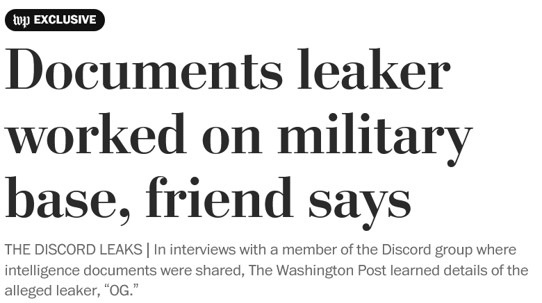 Die Washington Post mit einem fesselnden Artikel über die Hintergründe der Geschichte. Wenn das so stimmt, werden sie den Verantwortlichen wohl bald haben. Der Typ Mitte 20 hat offenbar ohne politischen Absichten während Monaten in einem verschworenen Zirkel von Gamern und Einzelgängern das Material geteilt, bis es dann den Weg vom Gaming Server in die Öffentlichkeit fand.