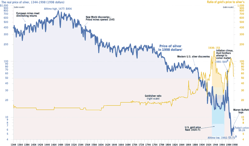 z.B. Charts für 600 Years Silver Prices & Gold Prices.