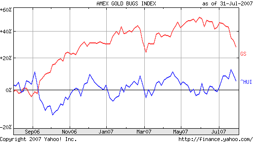 Unschwer zu erkennen, daß der HUI Gold (und Silber!!) underperformte.