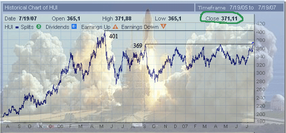 Das Hoch und seit dem Widerstand des HUI von Sept 06 ist durch ![]()