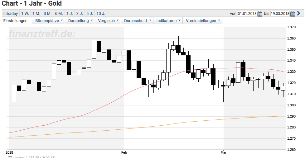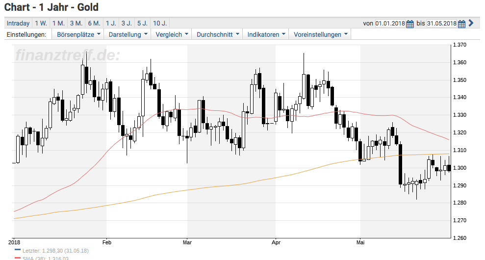 Der Goldpreis verlief von Januar 2018 bis Mai 2018, also unmittelbar vor der Übernahme, seitwärts.