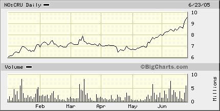 - Zukauf. Vestrum weist auf Crew´s Ziel hin, von einer kleinen zu einer mittleren Bergbaufirma zu werden. Daran wird aktiv gearbeitet und man kann einen größeren Zukauf in naher Zukunft nicht ausschließen. Crew wäre in so einer Transaktion der führende Teil und dies würde teilweise durch neue Aktien finanziert.