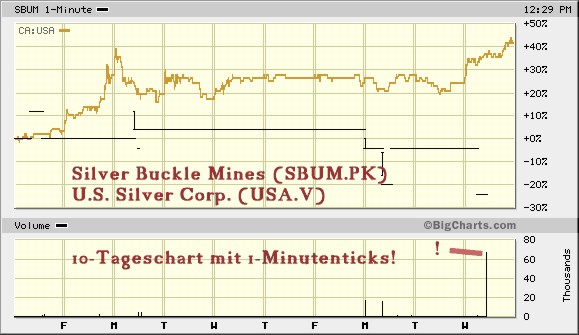 1. Sehe grade, bei Silver Buckle Mines (SBUM) & American Silver Mining (ASLM) passiert entweder genau das: einige verlieren die Geduld & schmeissen ihre Shares raus- wahrscheinlich um in USA.V zu wechseln.