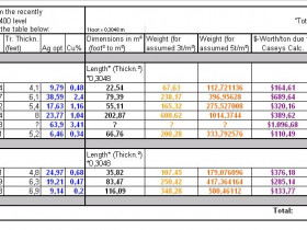 Vor allem kann man die oft wie Kraut & Rüben angegebenen Grades für verschiedene Metalle in verschiedenen Angaben (g oder Unzen pro Tonne Gestein, oder Prozent etc.) ganz einfach untereinander reihen & addieren!