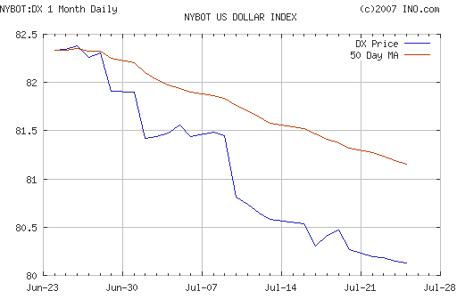 ZitatAuch über den der Abverkauf der US-Dollars im Sommer 2007 wurde bereits ausführlich geschrieben. Auch hier liegen die Daten bereits im Vorfeld der Zeit. Aber so richtig interessant wird es für unsere Goldfreunde dann erst mit dem Wechsel des Saturn vom Löwe in die Jungfrau. Dann nämlich betritt der nüchterne Bilanzmann die Bühne der Zeit. Und dann heißts auf einmal: Hoppla, wer bist Du denn - und warum auf einmal alles ganz anders sehen? Das gibt dann, wie das lezte mal in 2005 geschehen einige Devisenturbulenzen ab 01.09.2007.