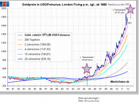Aktuell befindet sich der HUI - LINK - bei 501 Punkten, hat also die erwarteten 10-15% Korrektur rascher vollzogen als in den vorherigen Zeitphasen in denen Merkur R/D war. Der angepeilte Erwartungsert wurde also erreicht.