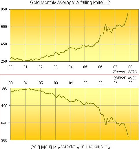 Oh save me from Gold, Goldman is a Gold bear. Oh save me from Gold, Paulson is going to fix trillions in melting derivative as well as stopping the mortgage problem from smothering the entire world economy. Oh save me from Gold the dollar is looking a wee bit better. Madness is the only word to describe where many of your reasoning has gone. ![]()
