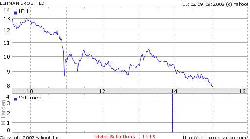 Ich hoffe der USD hat sich nun bei 1.13 zum CHF und 1.415 Euro endlich ausgekotzt und der Markt shorted den USD nun ganz heftig nach" Lehman wackelt auch" und dem F&F Feuerwehrspiel der FED.