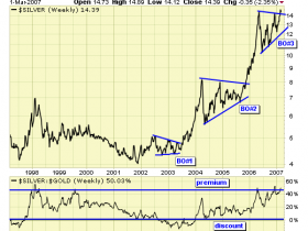 Ich bin aber vorsichter und denke mir das zumindest die 850 USD POG und POS 21 USD in 2008 erscheinen. Es kann harte Korrekturen geben bis -20% in den Bullrun bis 2012-2015. Je nachdem was politisch und wirtschaftlich passiert gibt es Jojos von 100 USD und einen Preissprung von 50 USD am Tag.