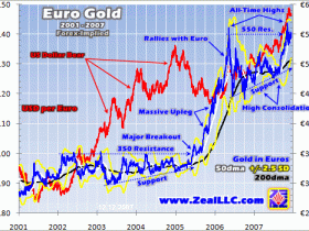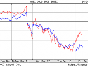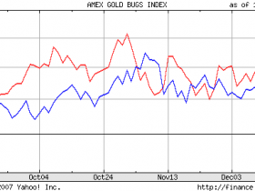 Solange der HUI (blau) unter GS (rot) ist hat das PPT die Kontrolle ueber den Goldmarkt.