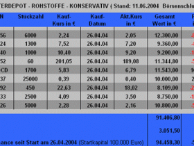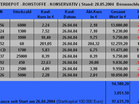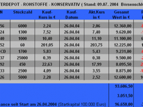 Im Depot selbst gab es nur leichte Verschiebungen vom Kaffee zum Palladium. Ansonsten gab es keine nenenswerten Kursschwankungen.