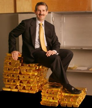 Ein Foto, das ich gelegentlich und gerne aus dem Archiv hole : Rob McEwen hockt während seiner Zeit als CEO von Goldcorp -- die er vom Pennystock zum damals größten Golderzeuger aufbaute -- auf Gold, das er nicht in den Markt warf, sondern auf besseren Marktpreis wartete.