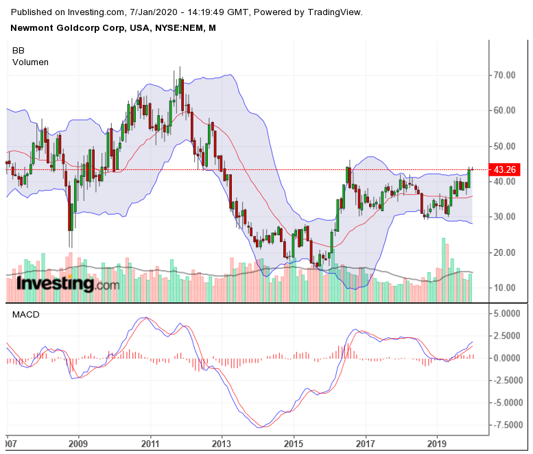 • ... in den letzten vier Jahren die Barrick-Aktien um 22% gesunken sind, während die Newmont-Aktien um 65% stiegen.