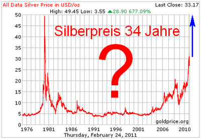 Ich biete hier und heute eine Wette an: Ich wette das wir in 2011 GARANTIERT die 50 US Dollar sehen werden beim Silber.