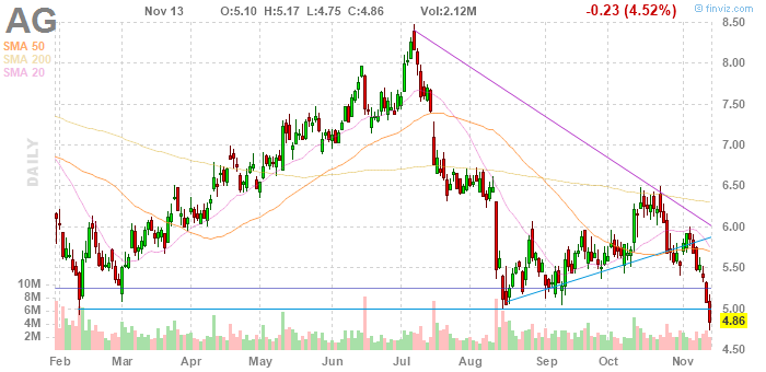 Der Kursverfall bei den Primärproduzenten nimmt verheerende Ausmaße an. Hier einige Beispiele mit aktuellem Chart :