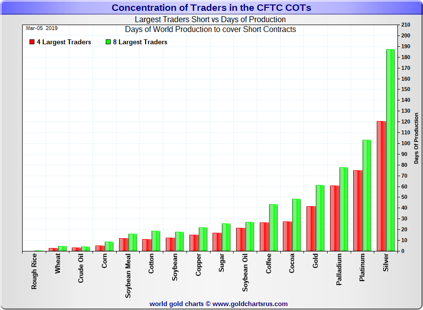 Angehängt eine etwas ältere Statistik, die aber seit Jahren etwa unverändert ist: Silber wird in erschreckendem Ausmaß geshortet, und zwar von JPM mit hohem Anteil -- einer Fed Bank zumal, <X -- die andererseits vermutlich Silber physisch hortet....