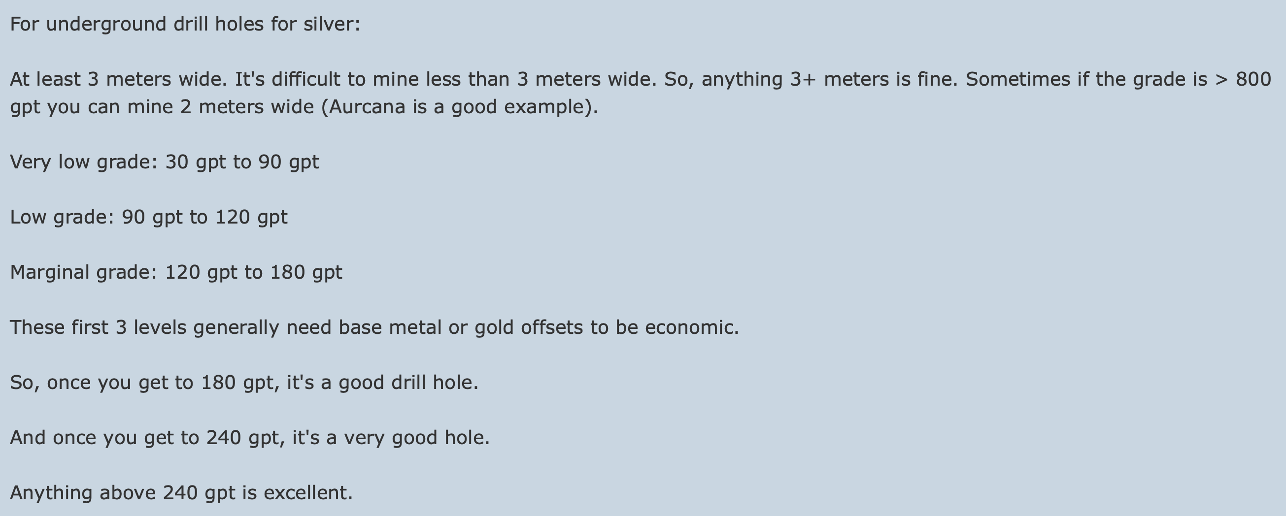 Don Durrett, der Kopf hinter goldstockdata.com/, hat auf Twitter mal zusammengeschrieben, was alles zu Beachten ist, um als Laie ein gutes Silber-Bohrloch erkennen zu können.