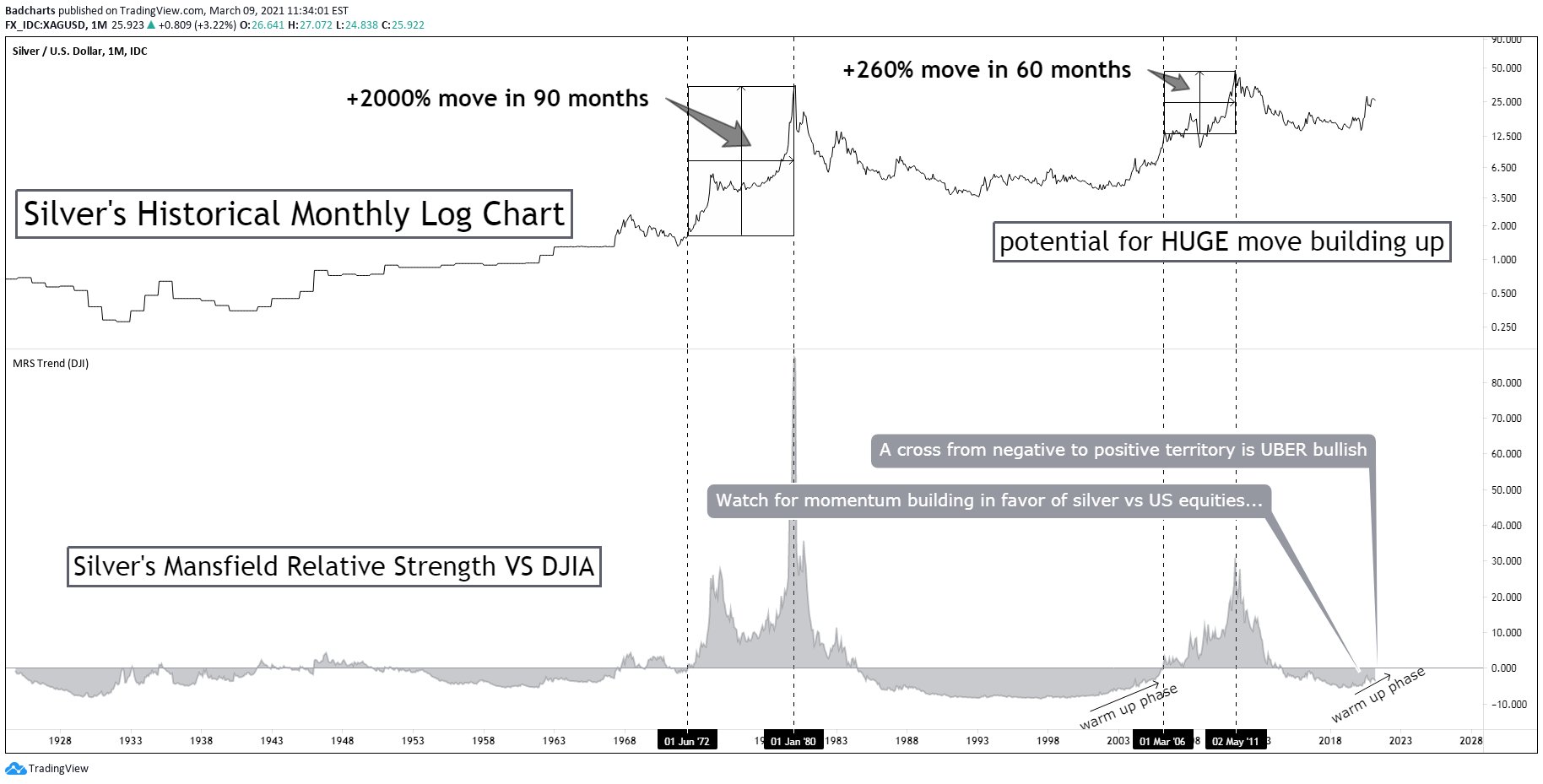 Würd sagen, ein sehr starker Widerstand um die 26 USD bremst derzeit Silber aus.