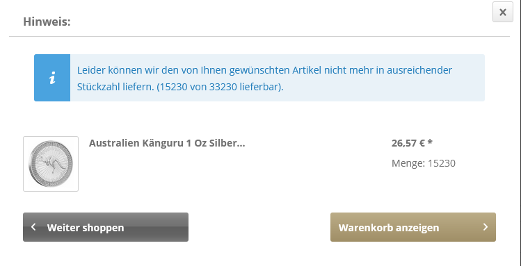 Noch 6159 Kängurus lieferbar bei der Silber-Ecke.