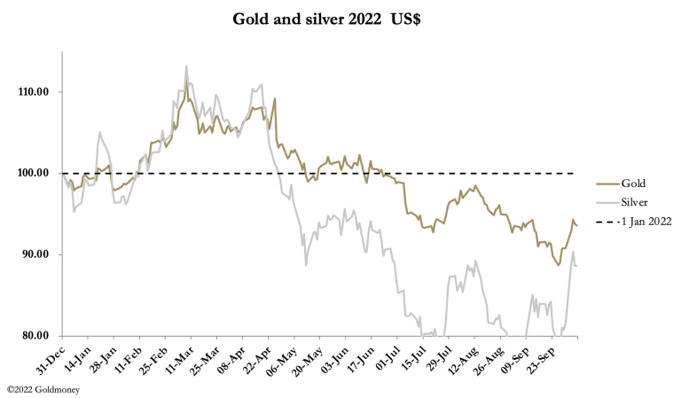 Nachdem der TWI am 26. September einen Höchststand von 114,53 erreicht hatte, fiel er bis Dienstag auf 110,06, bevor er sich wieder erholte. Der USD-TWI ist das Spiegelbild des Papiergoldes. Doch bei diesen Niveaus stehen die Händler zur Lieferung bereit und wandeln Papier in physische Goldbarren um.