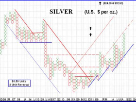 Wenn schon Charts, hier noch einer, etwas zuverlässiger--soweit überhaupt: Ein P&F Chart von Silber, (hatte mir den vorhin verkniffen).![]()