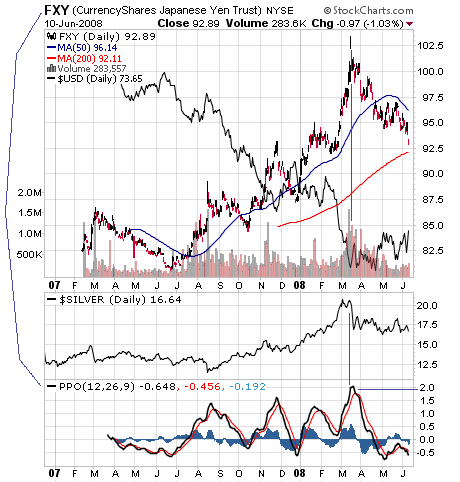 FXY:$USD Abstand zur 200-Tagelinie indicator PPO(1,200,1)die Indikatoren