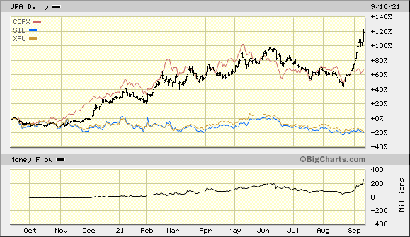 Der Uransektor mit aussergewöhnlich hohen Kurssteigerungen auf breiter Front.