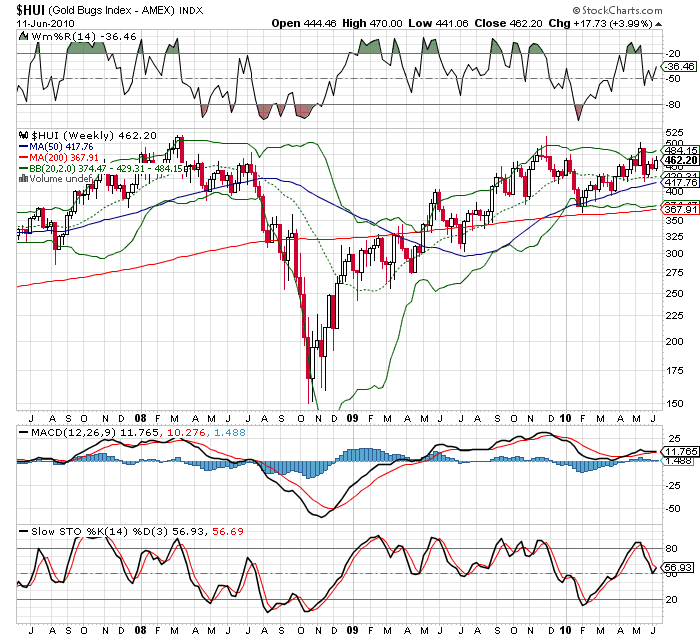 Über 50 % Cash ist enorm, bin da nicht so sicher, ob da Neid angezeigt ist. Über den HUI gibt es widersprüchliche Einschätzungen, sicher kann er nochmals in die Gegend der 200 MA bei 360 tauchen oder so, mit etwas Hilfe des Goldpreises läuft er weiter up and away.....