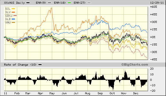 Bis auf unbedeutende Ausnahmen alle im tiefroten Bereich. Es sieht fast nach Verkaufspanik aus, selbst bei hervorragenden Produzenten. Besonders große Einbrüche bei den Explorern und Silberaktien, letztere hier :