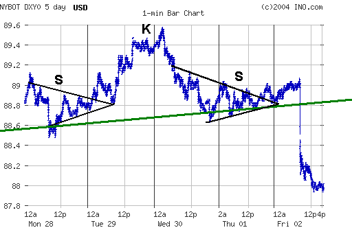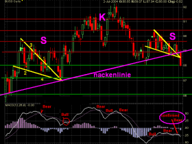 Ein leichtes Halten ueber dieser Nackelinie sollte nicht sofort als KAUFSSIGNAL fuer den USD gewertet werden, da das Zeichnen der Nackenlinie auch noch eine (oder gra 2) Alternativen uebrig haette.
