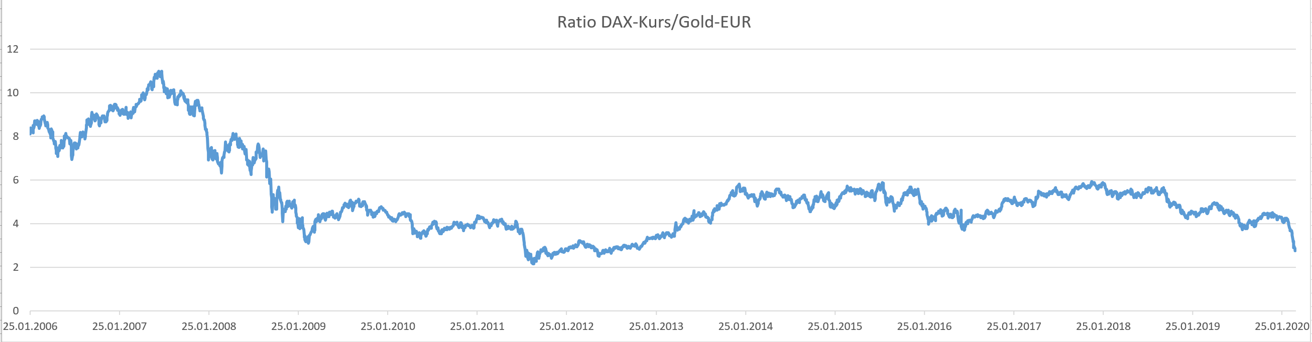 Frage zum DAX/Gold Verhältnis. Sollte man hier auf den DAX-Kurs oder die DAX-Performance schauen ? Wäre der DAX-Kurs nicht besser, da er die Dividenden ausblendet ?