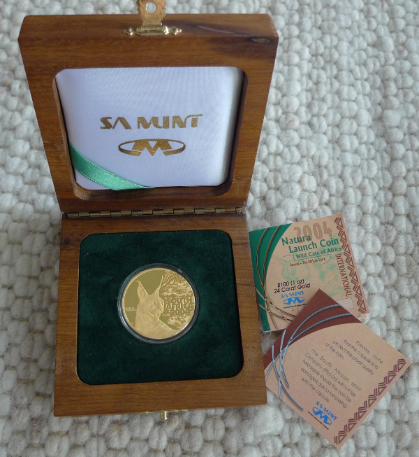 Wie gesagt, das hier ist "nur" die 1 oz 2008 Elephant ... aber in einer sehr schönen wooden box mit Zugabe, von daher teurer als eine 1 oz single coin in der green SA Mint box.