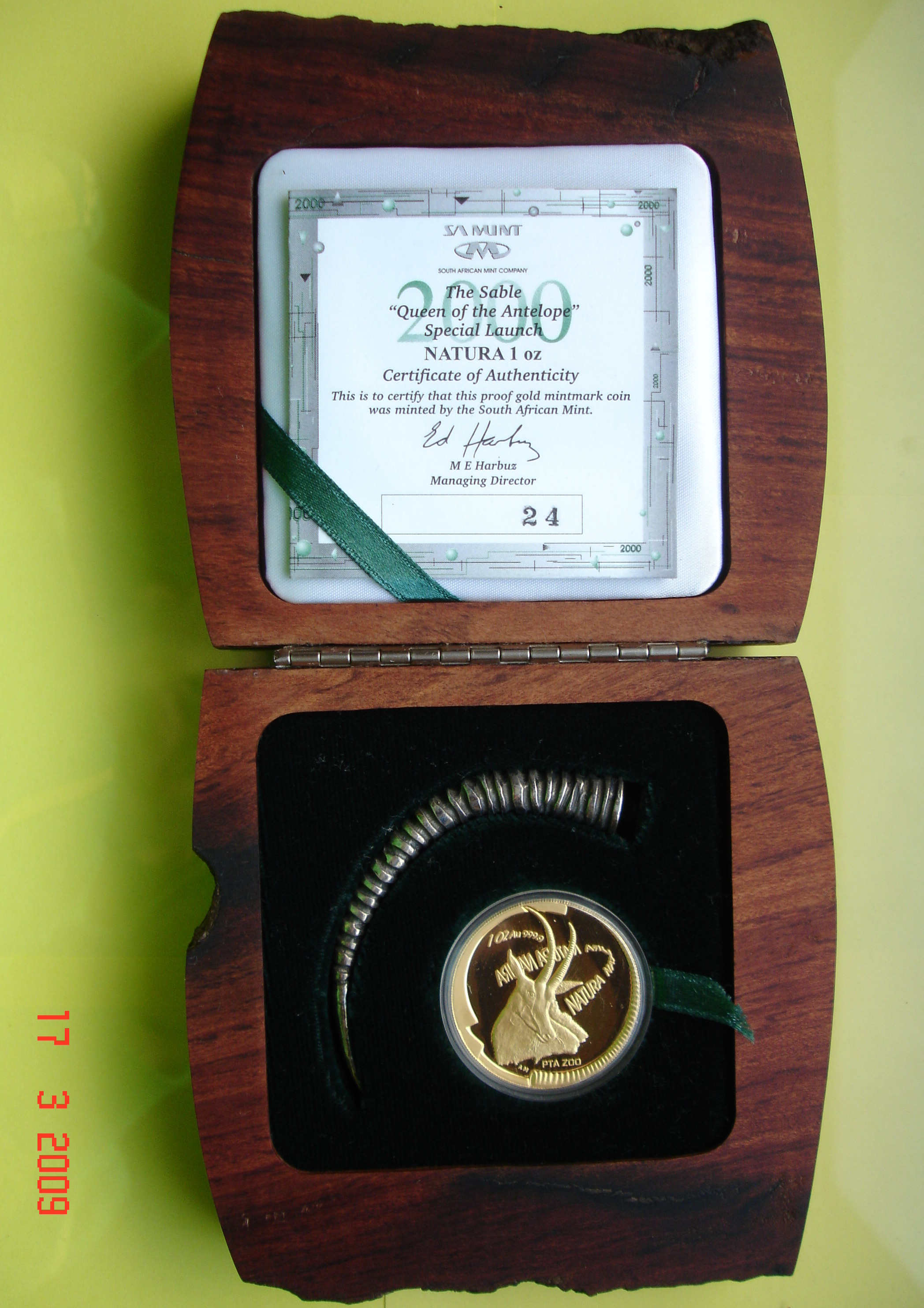 2000 Sable, PTA ZOO, Auflage mintmark coin 595, Local Launch Set max. mintage 350, Internatinal Launch Set max. mintage 350