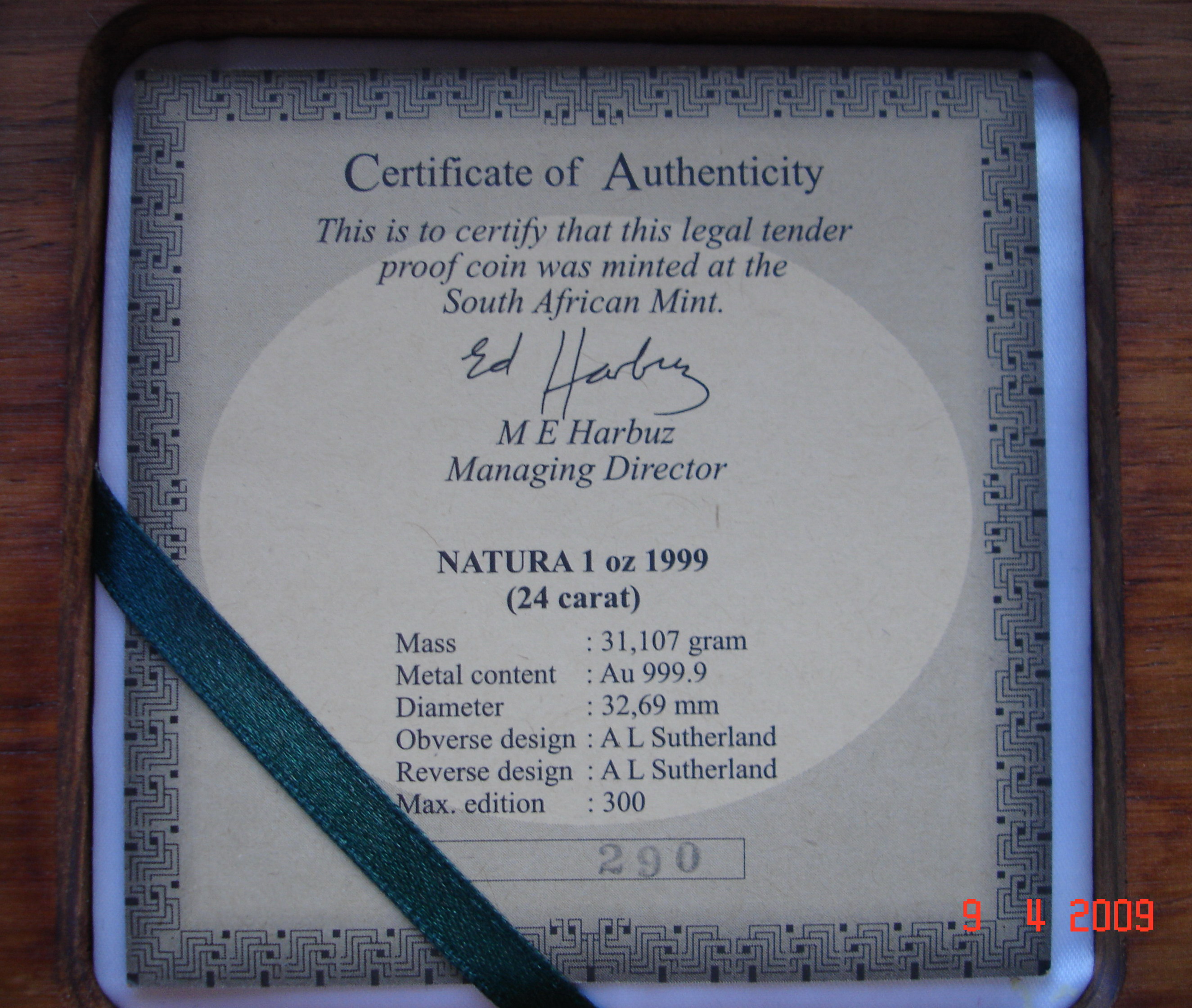 (da offizielles Zahlungsmittel, bedarf es hier der Genehmigung des Finanzministeriums von Südafrika, weshalb man davon ausgehen kann und muss, dass es auch nicht mehr Münzen geben darf als die max. mintage)