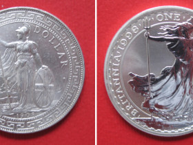 Britannia auf Trade Dollar 1908 und auf One Ounce 1998