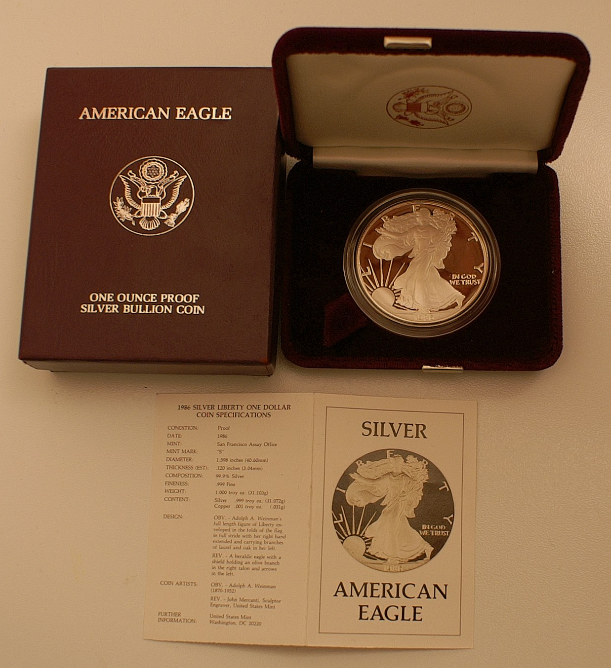 Und das ist ein 1986er Silver Eagle PP so vollständig wie es nur irgendwie geht.