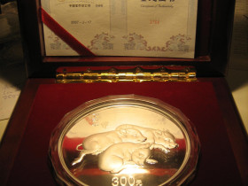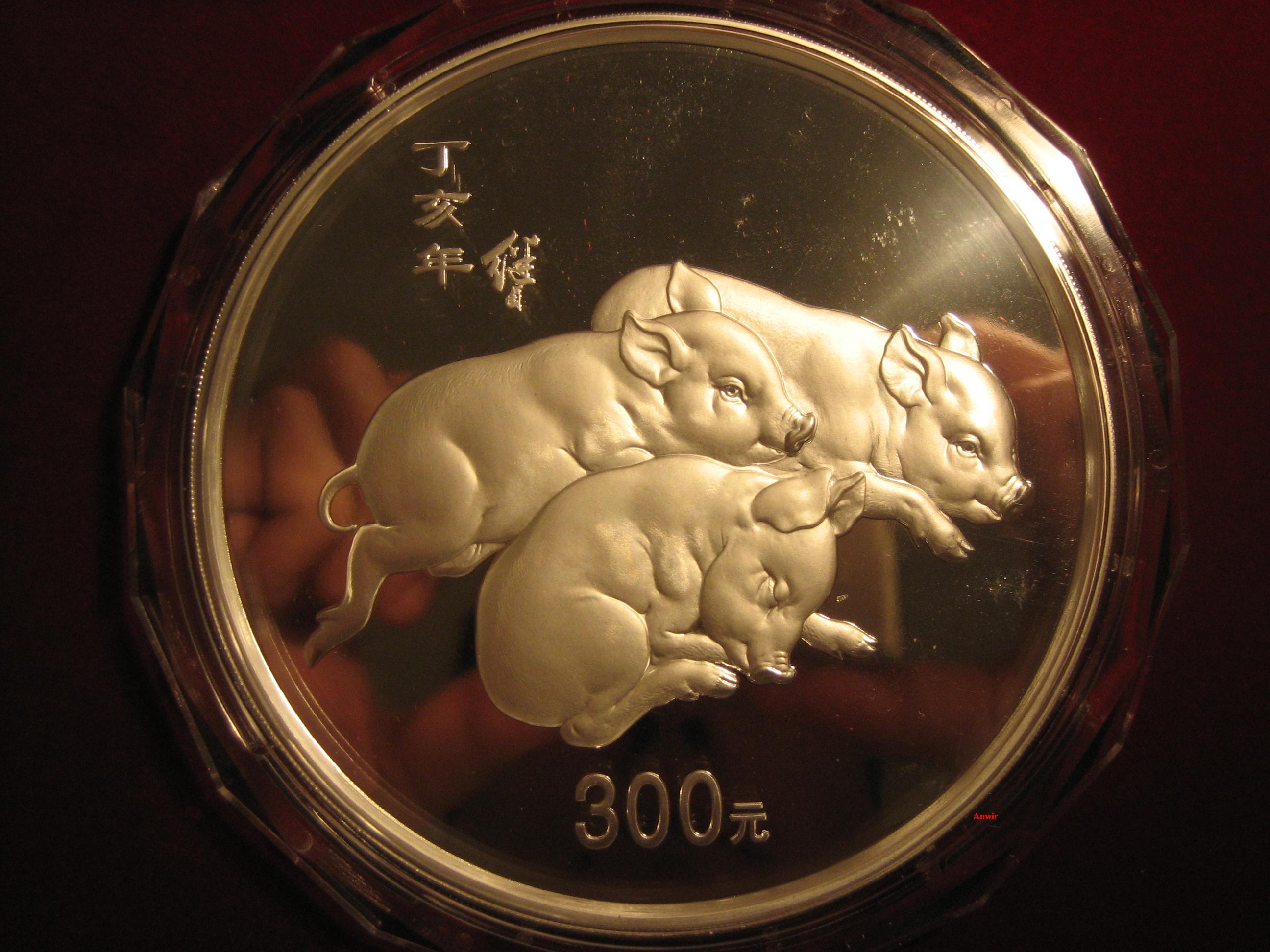 Kilo aus der Lunarserie 2007 Jahr des Schweins, 3.800 Stück. Leider mit kleinem Schlag über einer Pfote aber die Qualität dieser Prägungen aus China ist noch verbesserungsfähig ![]()