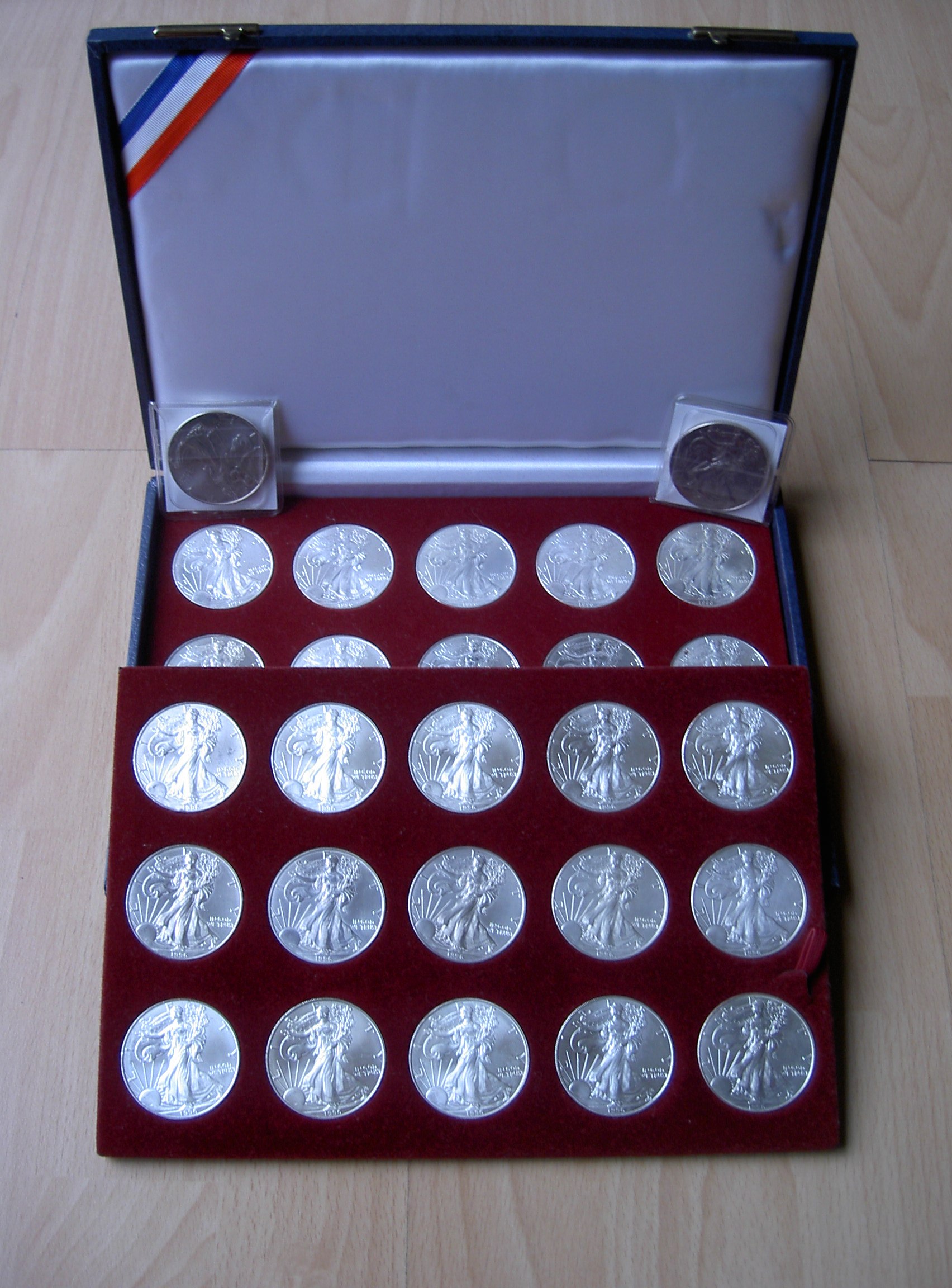 Silbergalerie mit eigenen Bildern von Silbermünzen und Silberbarren