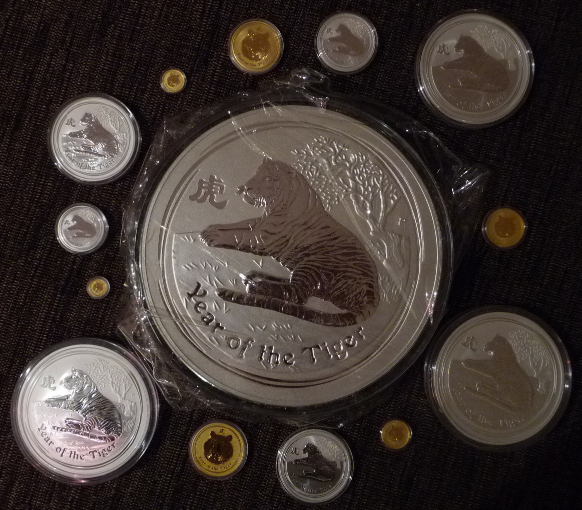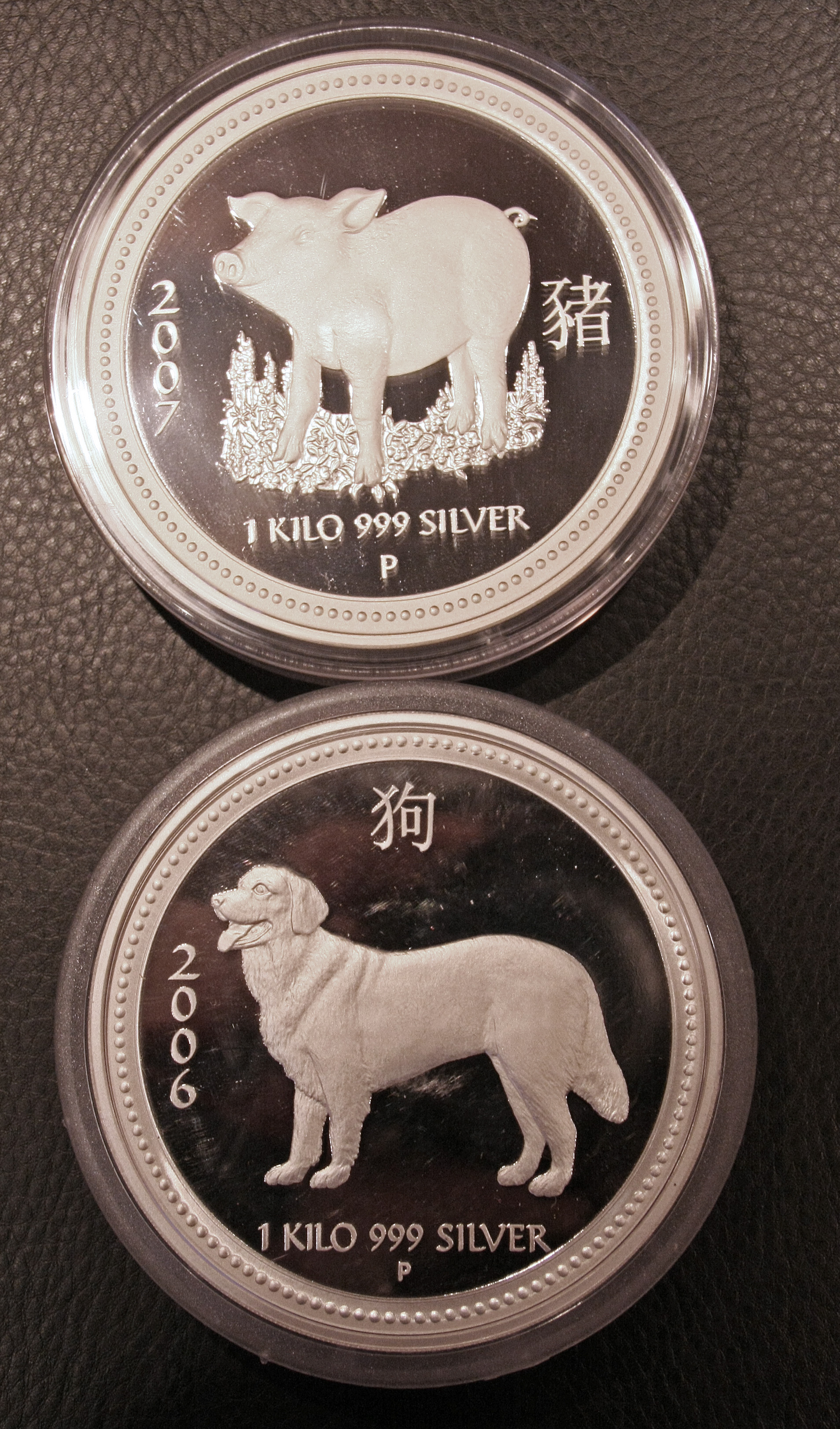 Gold: 1/20 Oz, 1/10 Oz, 1/4 Oz, 1/2 Oz, 1 Oz und 2 OzLink zu Lunar II Maus: Silbergalerie mit eigenen Bildern von Silbermünzen und Silberbarren