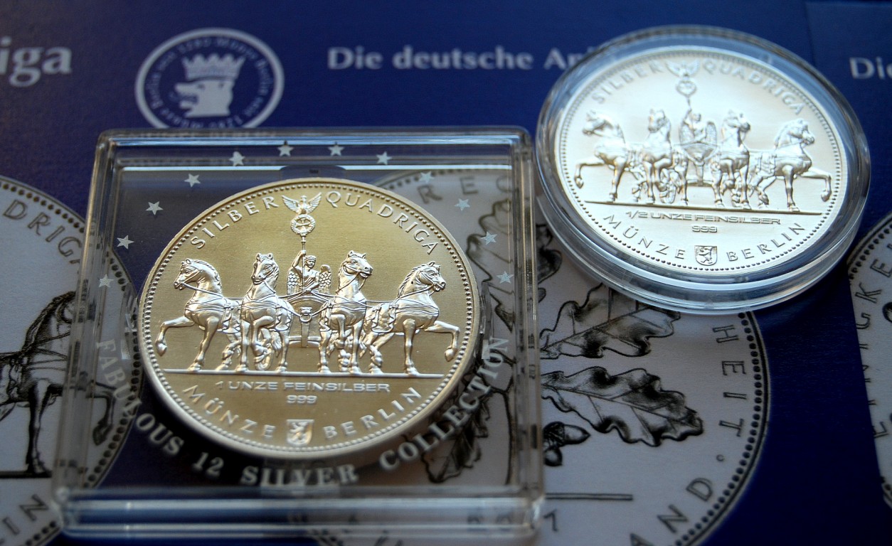Silbergalerie mit eigenen Bildern von Silbermünzen und Silberbarren