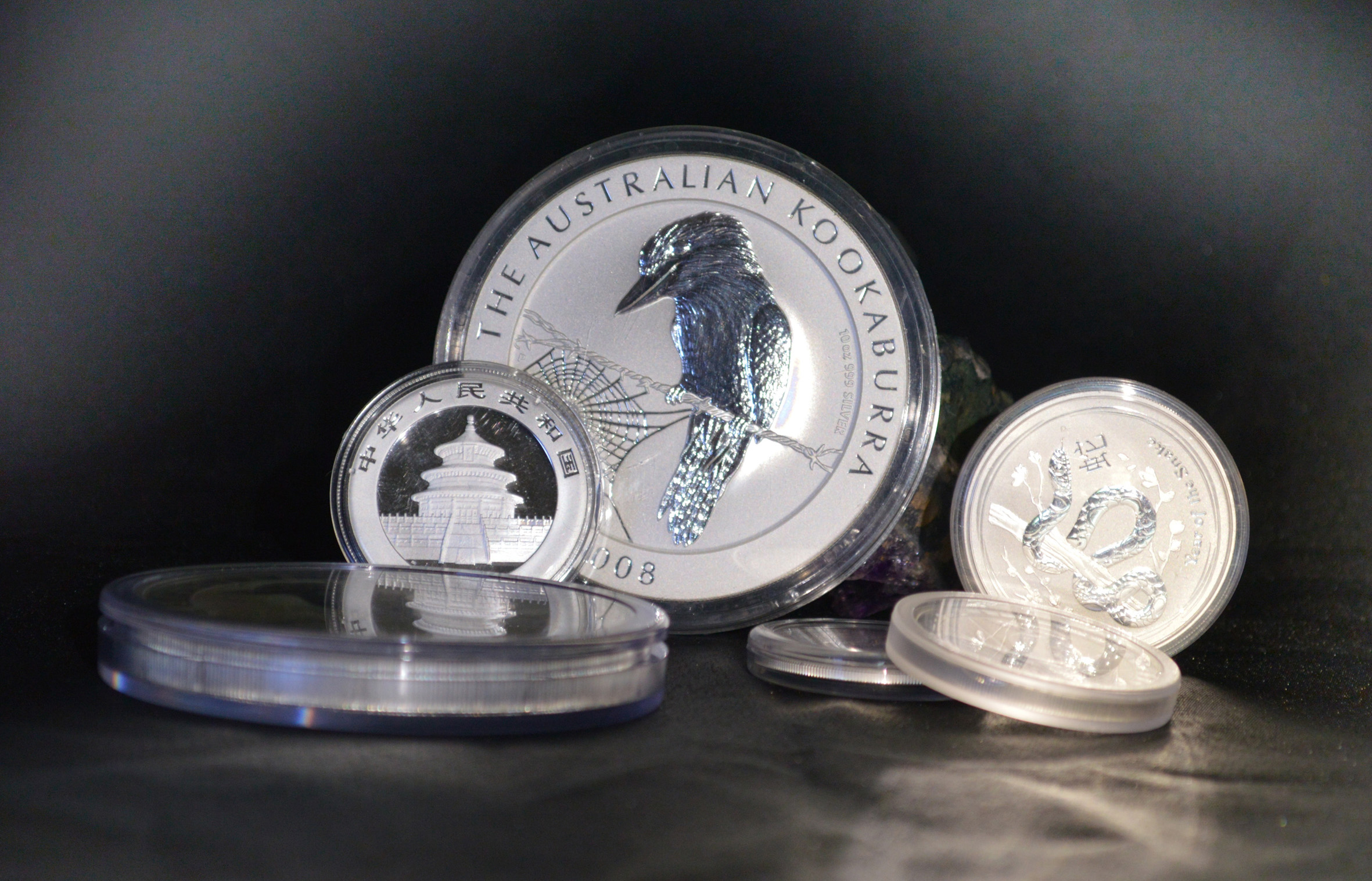 Silbergalerie mit eigenen Bildern von Silbermünzen und Silberbarren