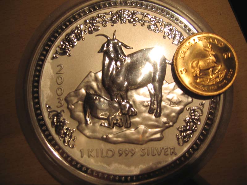 1 Kilo Silbermünze zum Grössenvergleich 1 OZ Krügerrand