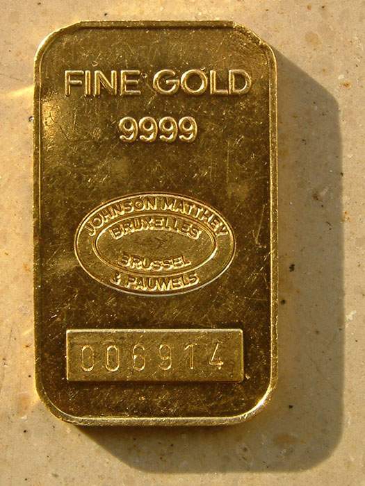 - - -Ich habe hier einen 20-gramm-Barren, den ich seit seinem Kauf in 2005 praktisch ständig dabeihabe. Heutzutage meist im Portemonnaie, früher auch einfach in der Hosentasche. Könnte ja mal vorkommen, daß man dringend etwas Gold anfassen muß, und sonst nichts zur Hand ist ,-)