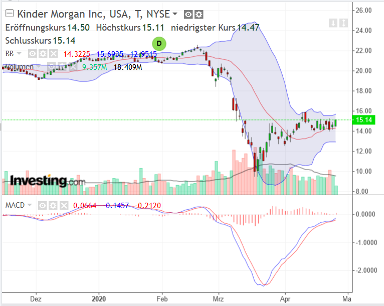 Kinder Morgan wird auch vom Fool immer wieder vorgeschlagen. Stellt sich die Frage, wie sich die Geschäfte entwicklen, wenn die Läger voll sind und im Inland weniger gefördert wird. Das wird auf die Durchleitungsentgelte gehen. Ich kann es ehrlich gesagt nicht belegen, habe aber Abstand von der Aktie genommen.