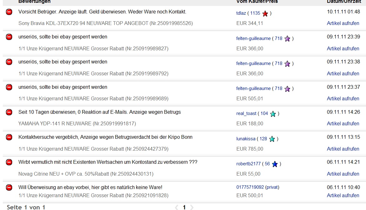 eben ist die neunte negative eingetroffen, bin ja mal gespannt wann ebay löscht.... ![]()