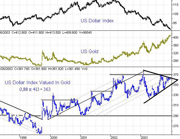Wer will, kann jetzt eine Prognose für den Goldpreis in Dollar für 2004 abgeben. Am Jahresende werden wir ja sehen, wer dann richtig lag!